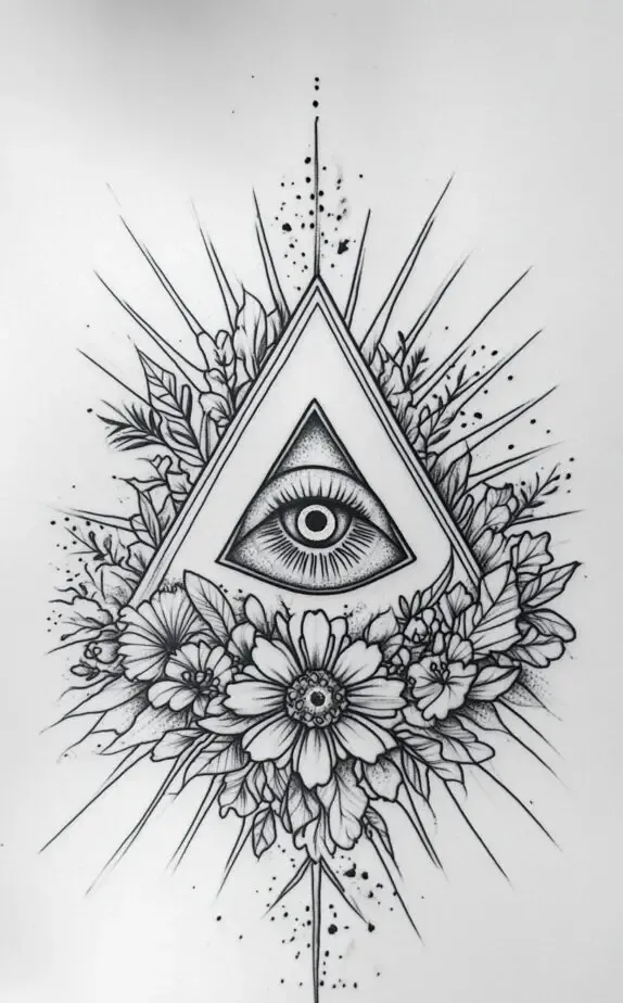 This tattoo design is perfect for those who value protection and seek to ward off negativity. The added floral details enhance the aesthetic, making it both meaningful and visually pleasing. It s a harmonious blend of tradition and personal expression.