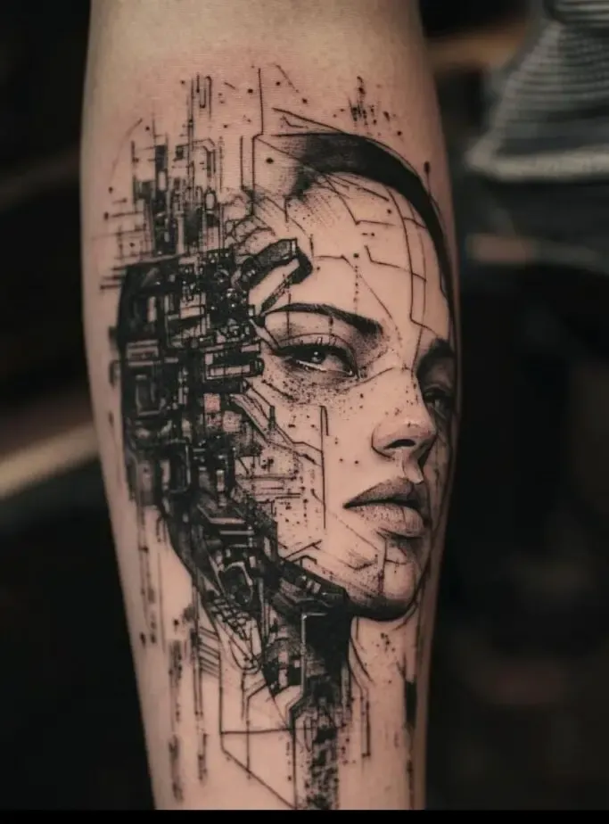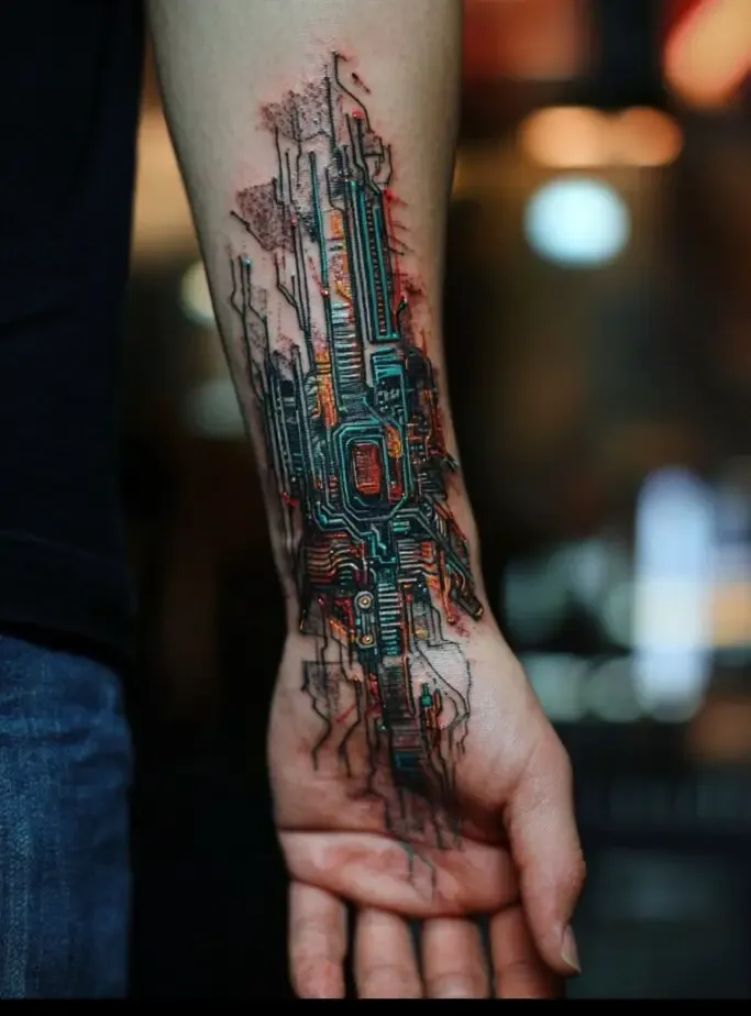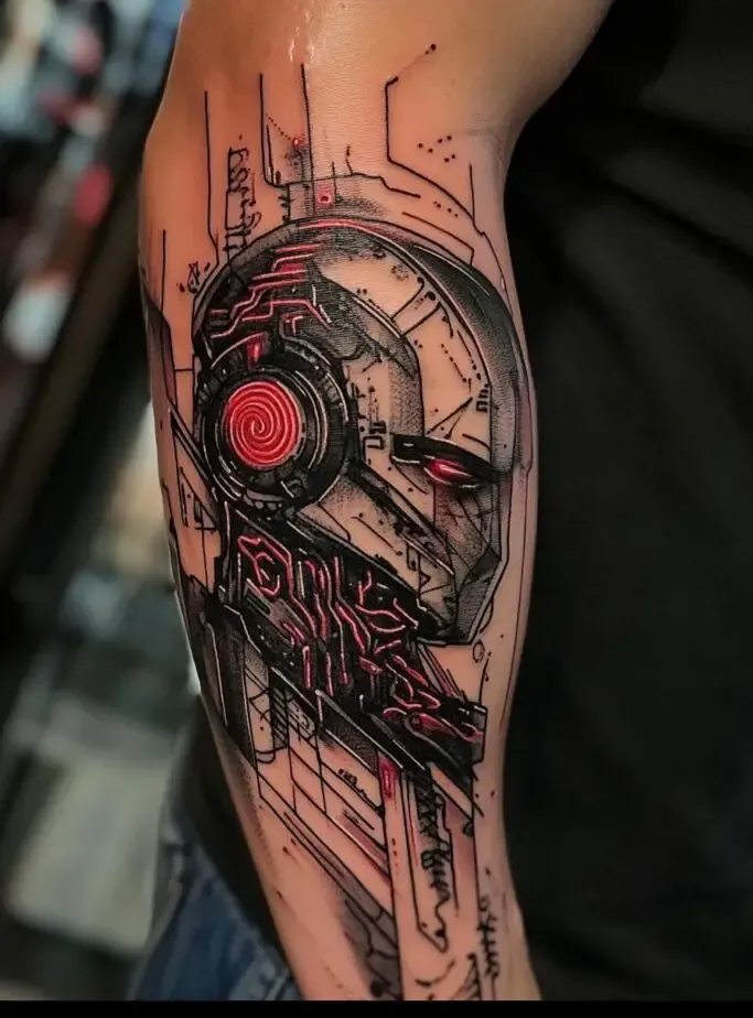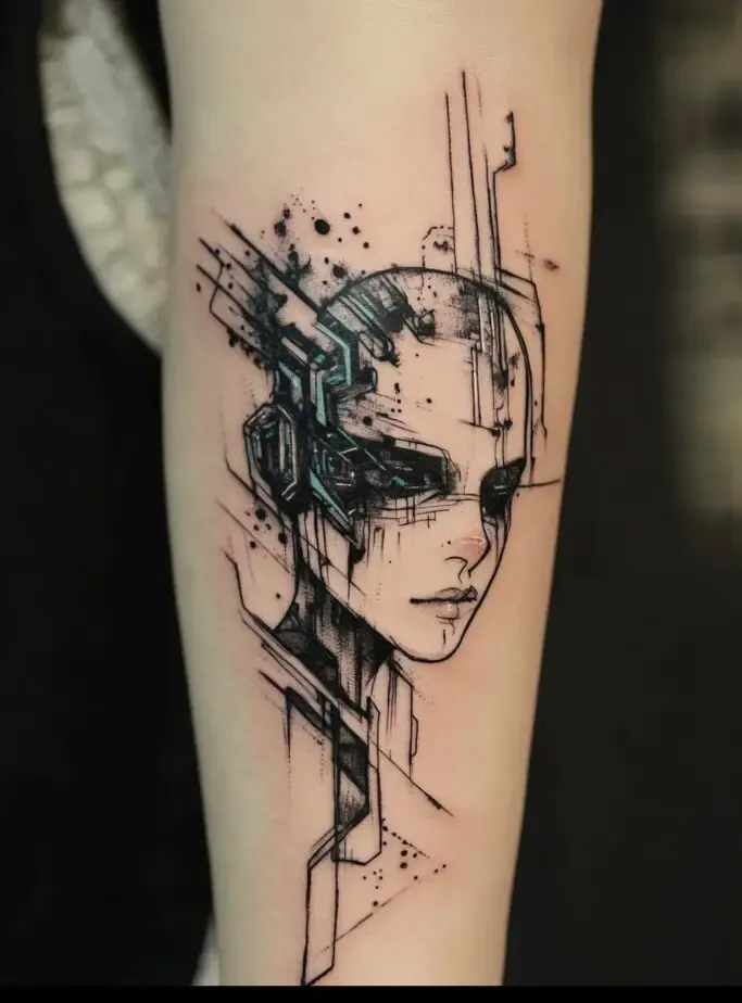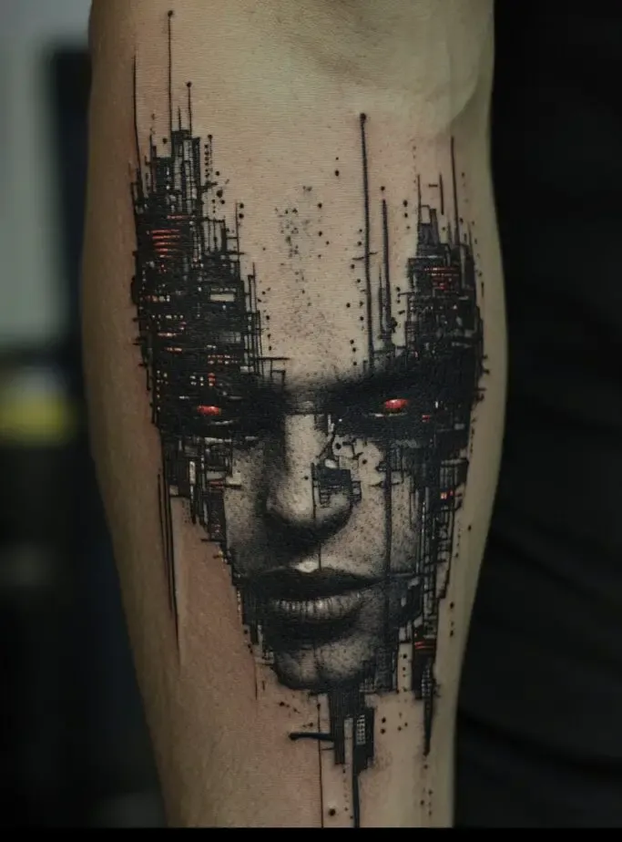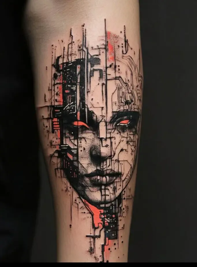 Cyberpunk tattoos push the boundaries of traditional tattoo art. Artists experiment with: