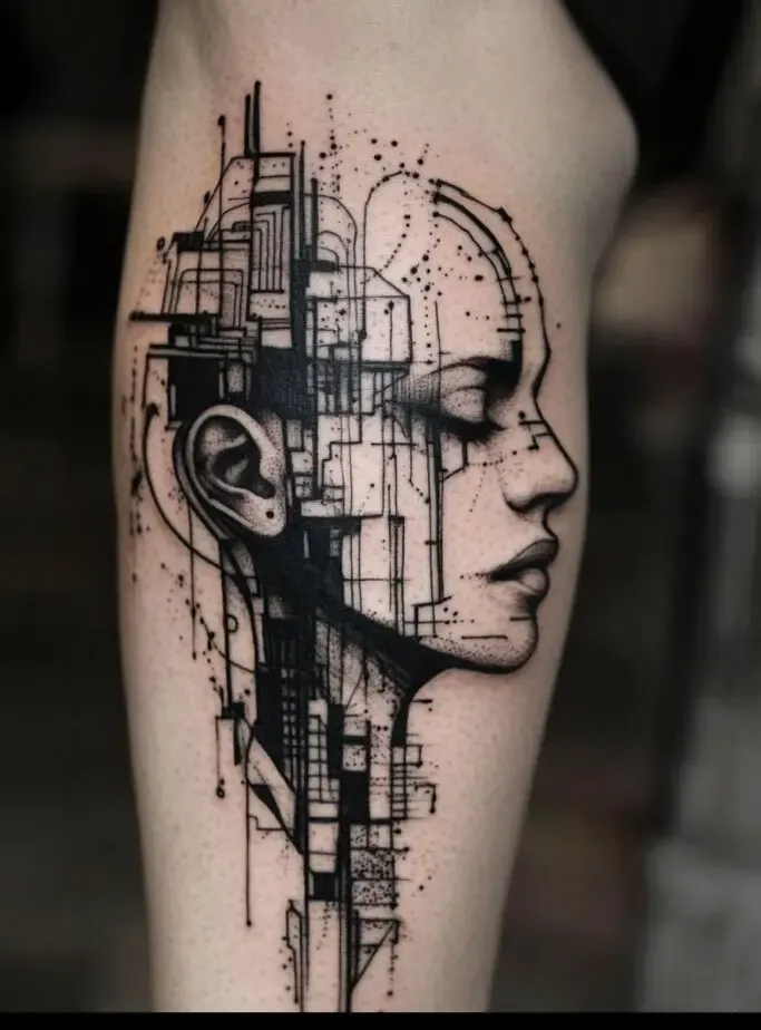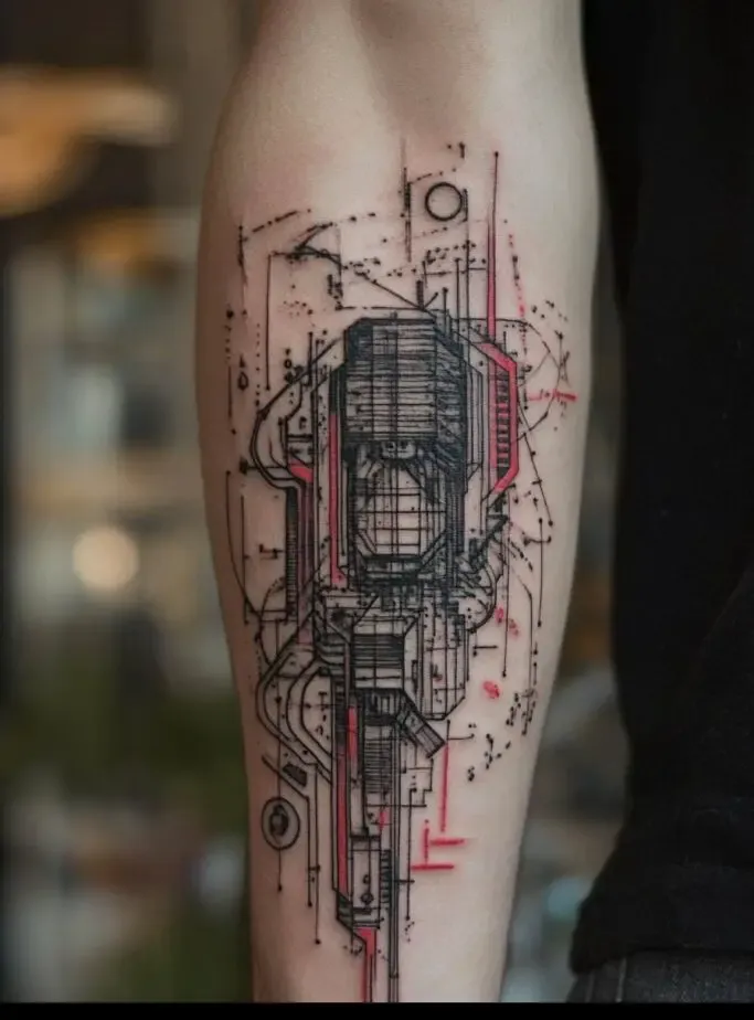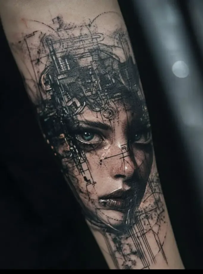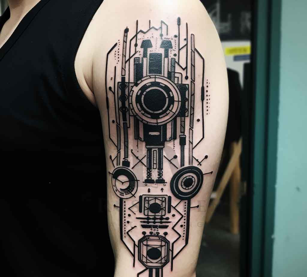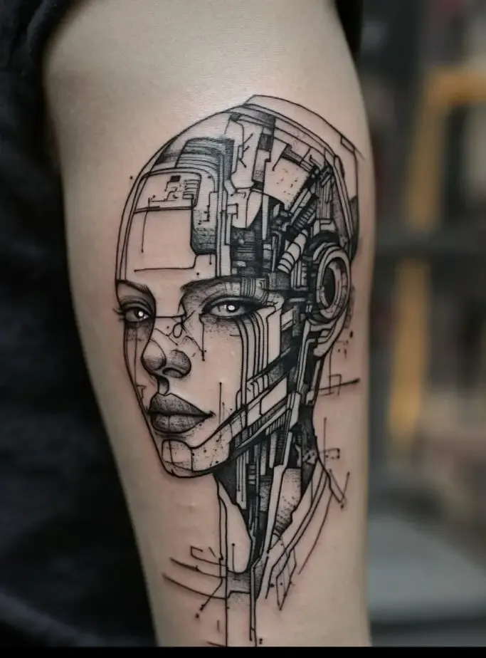 Cyberpunk tattoos push the boundaries of traditional tattoo art. Artists experiment with: