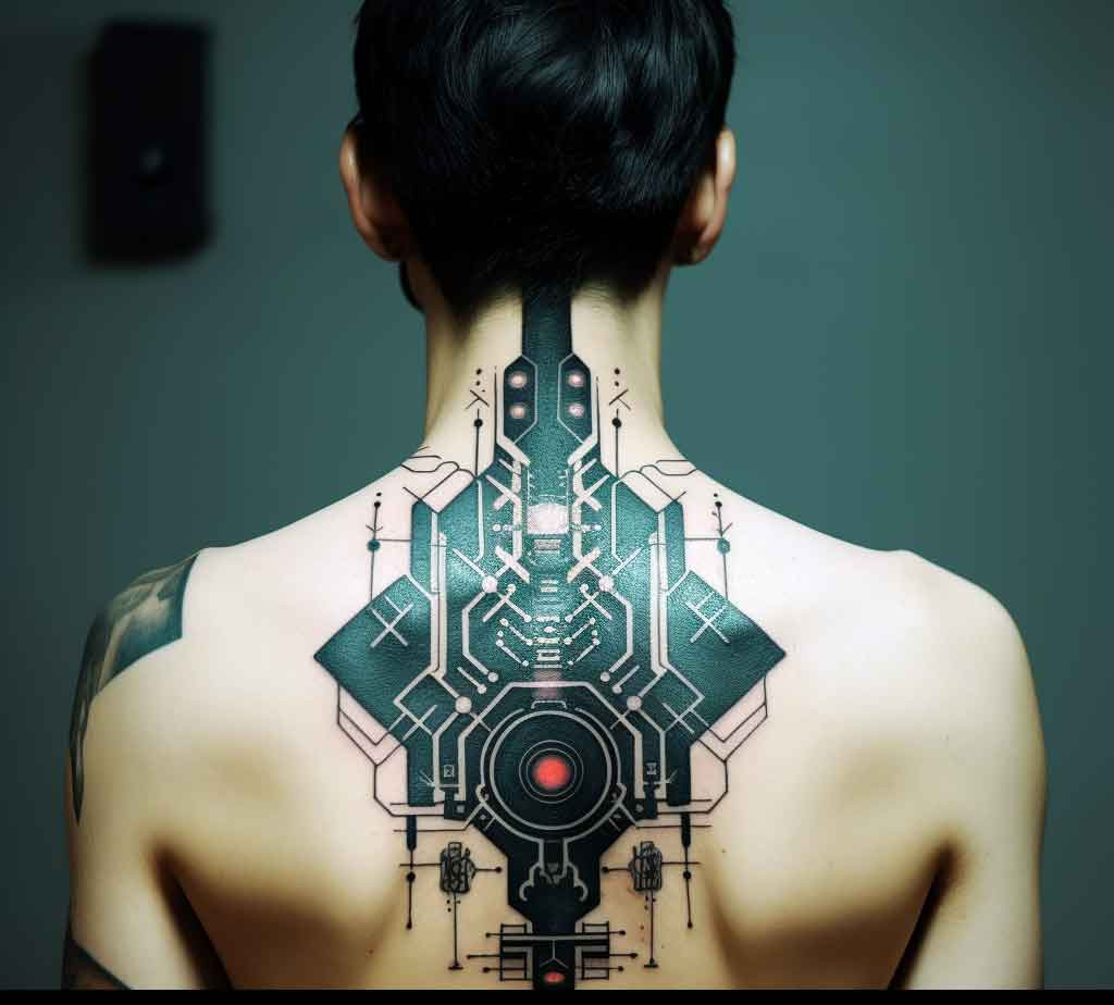 Cyberpunk tattoos allow wearers to carry a piece of an imagined future on their skin. This can represent: