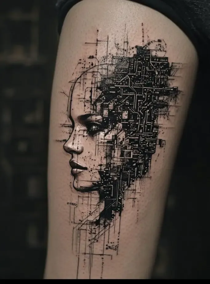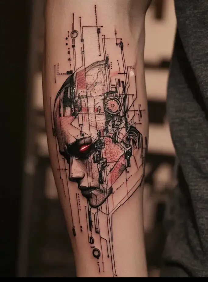 - Transhumanism and Embracing Technology: Tattoos featuring integrated circuits or robotic limbs represent the idea of merging with technology to enhance ourselves.