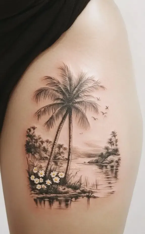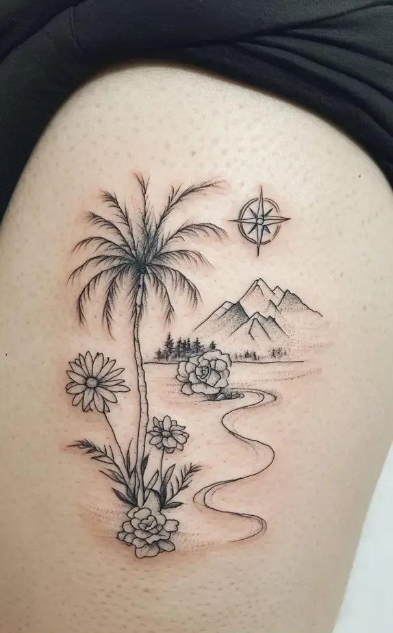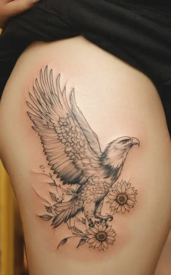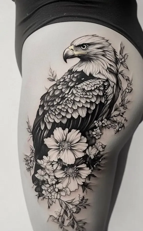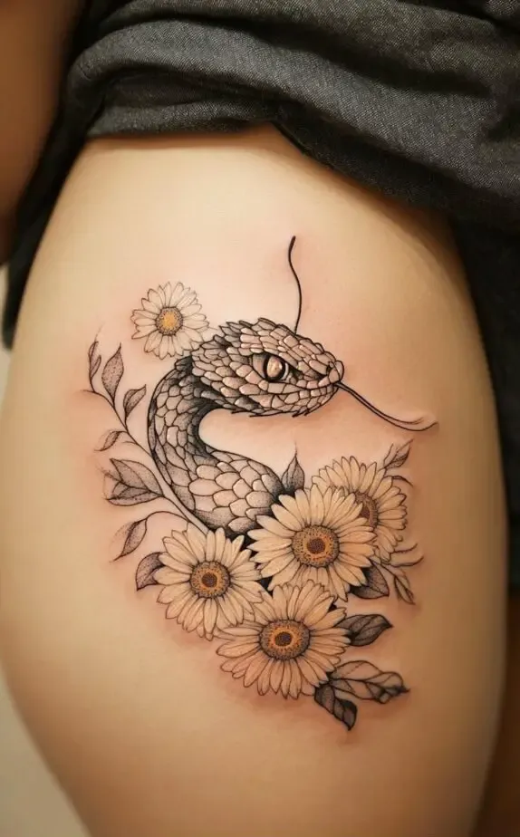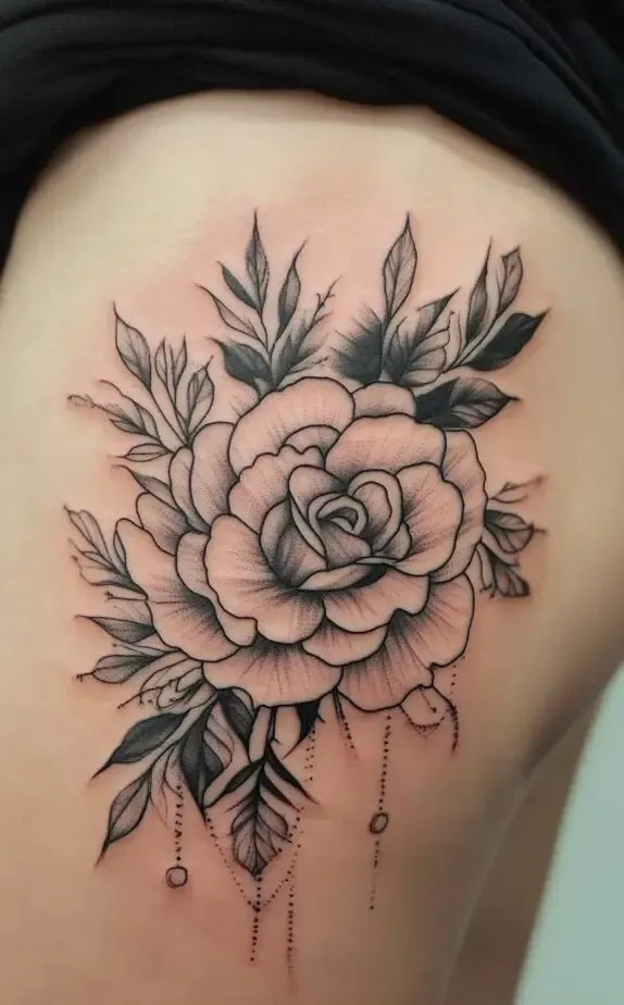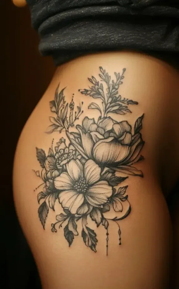 A delicate vine of flowers wrapping around the hip creates an elegant and feminine look. Popular choices include roses, cherry blossoms, and lavender.