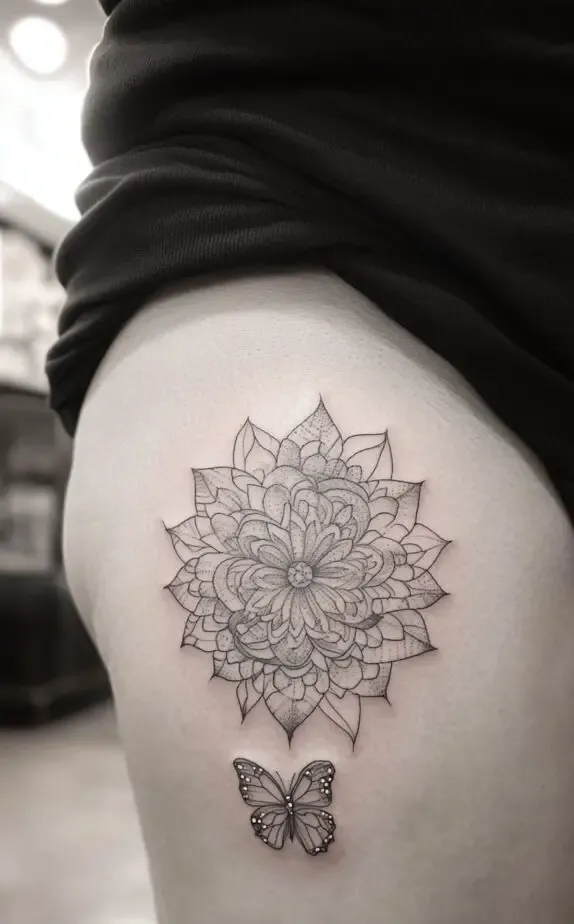 • Mandala Art: Reflecting balance and harmony, mandalas create stunning symmetrical designs on the hip.