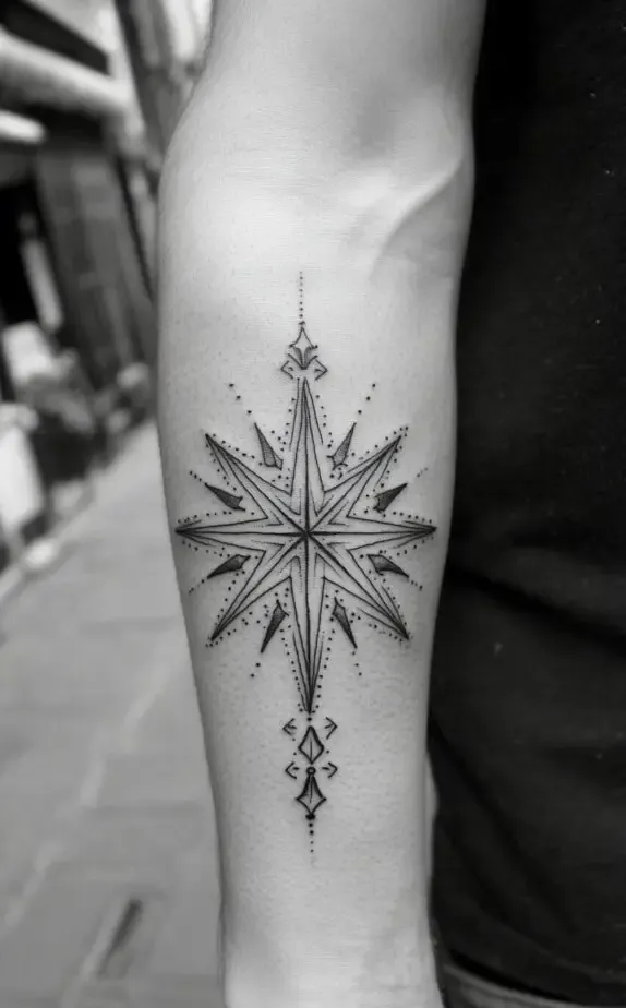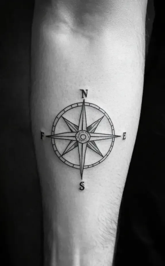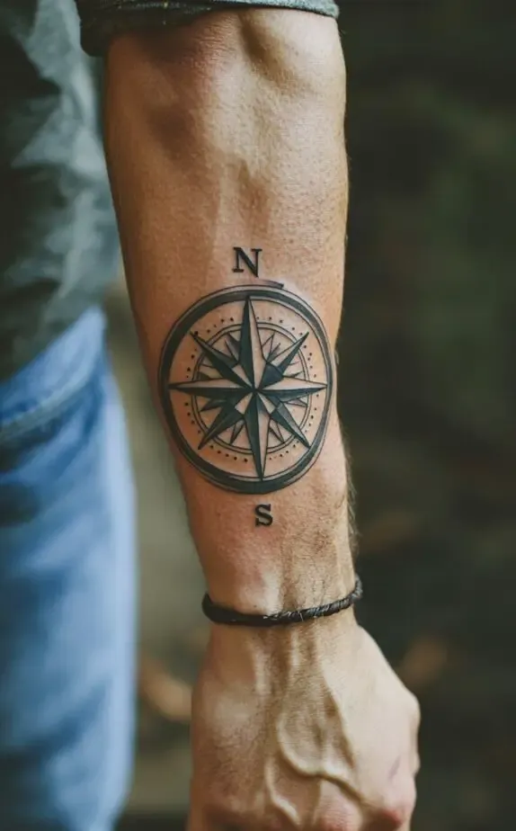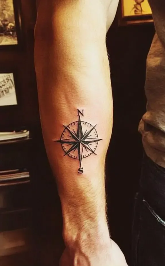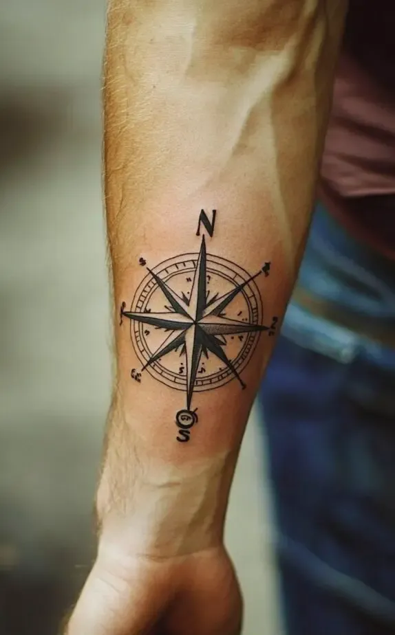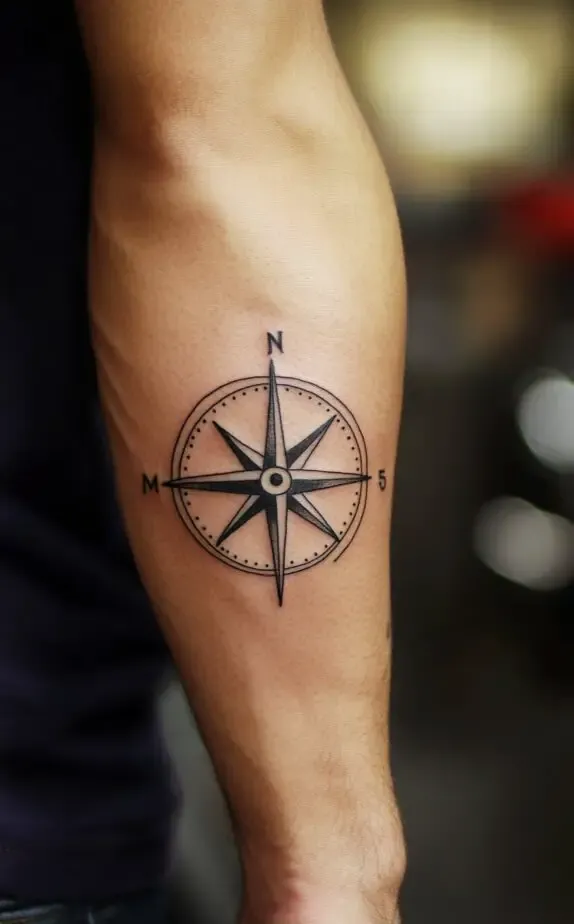 Combining the symbolic depth of the compass with the strategic placement of the forearm makes for a tattoo that is not only meaningful but also visually striking.