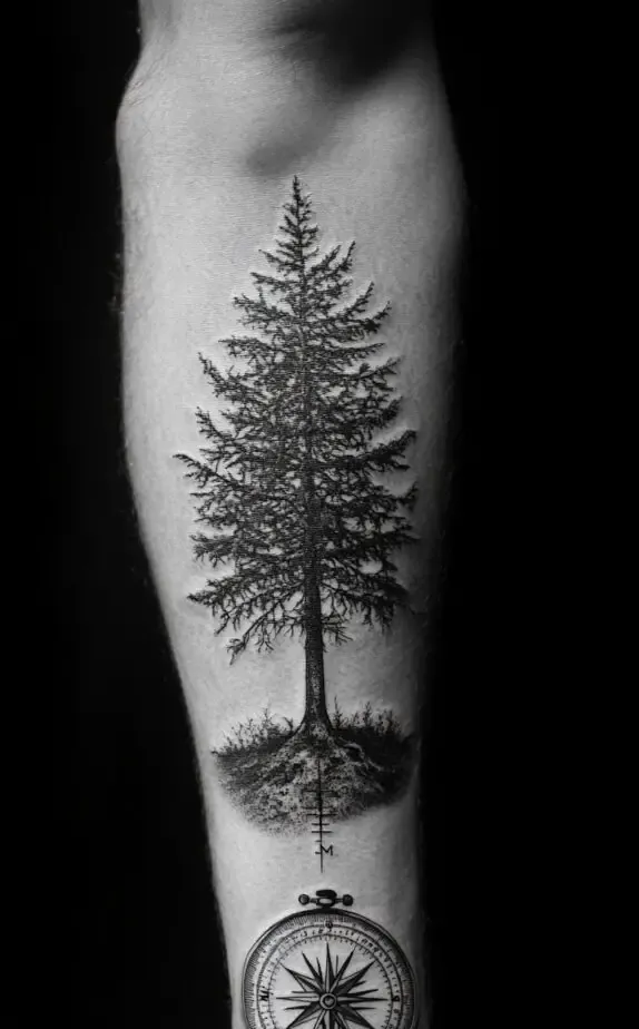 If you re drawn to the wilderness, Image 7 s compass with a tall pine tree is a beautiful representation of nature and stability. Pine trees symbolize resilience and longevity, and when paired with the compass, they remind the wearer to stay rooted while pursuing new horizons. This simple yet powerful design is ideal for nature enthusiasts and hikers.