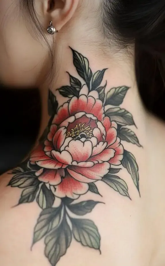 The final design features a bold and vibrant peony flower that covers the side of the neck. Known as a symbol of prosperity, romance, and honor, the peony is a favorite among tattoo enthusiasts. Its vivid colors and intricate details make it a stunning choice for women who want their tattoos to stand out.