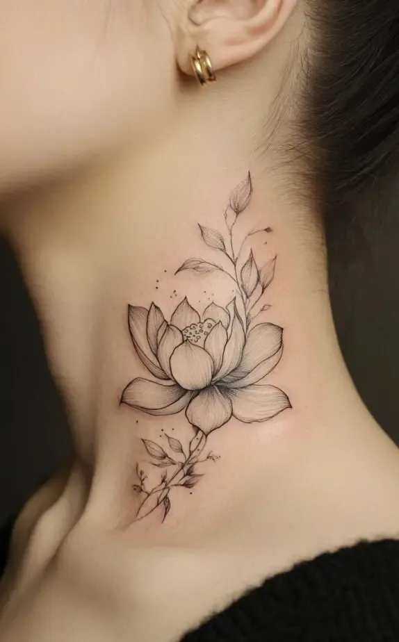 Floral Designs Flowers are a timeless choice for neck tattoos, symbolizing beauty, growth, and resilience. Roses, lotus flowers, and cherry blossoms are particularly popular.