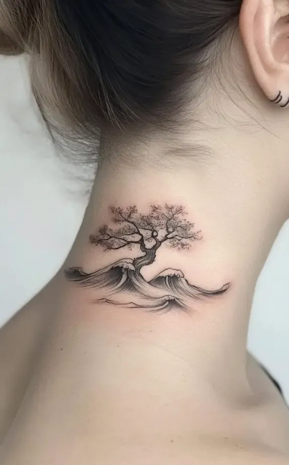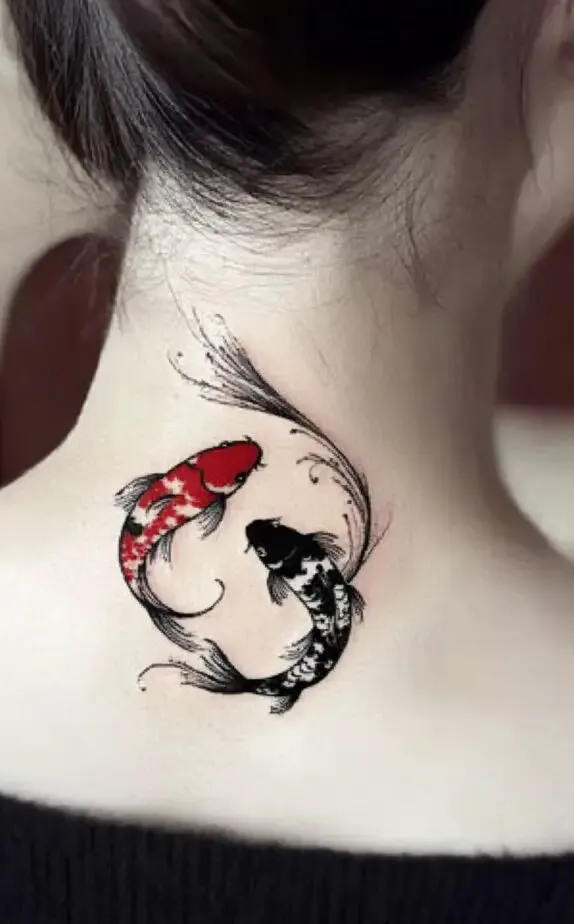 For those drawn to symbolic and cultural motifs, the koi fish tattoo is an excellent choice. This neck tattoo features two koi fish, one black and one red, swirling in a yin-yang formation. Koi fish are often associated with perseverance, strength, and transformation. Their flowing design creates a harmonious and balanced aesthetic, making it ideal for those who value serenity and resilience.