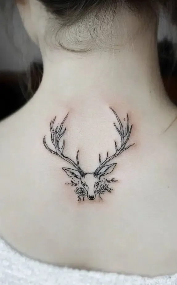 This tattoo features a subtle and minimalist depiction of a deer s antlers. Paired with small floral elements, this design conveys a connection to nature and spirituality. Deer are often associated with grace and gentleness, making this tattoo an ideal choice for women who value tranquility and poise.