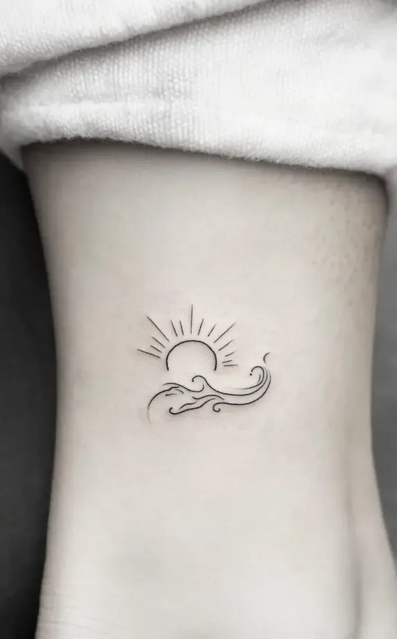 This minimalist tattoo, featuring the sun rising over a wave, combines elements of nature to convey hope, renewal, and the cyclical nature of life. The third image showcases how simple lines can create a powerful visual impact. It s perfect for free-spirited women who feel connected to the sea or seek a daily reminder of brighter days ahead.