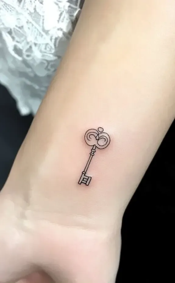 A small key tattoo, like the one in the first image, is both simple and timeless. Keys symbolize unlocking potential, secrets, or personal freedom. For many, this design could represent opening doors to new opportunities or safeguarding something precious. Positioned on the wrist, it s a subtle reminder of empowerment and the importance of embracing life s possibilities.