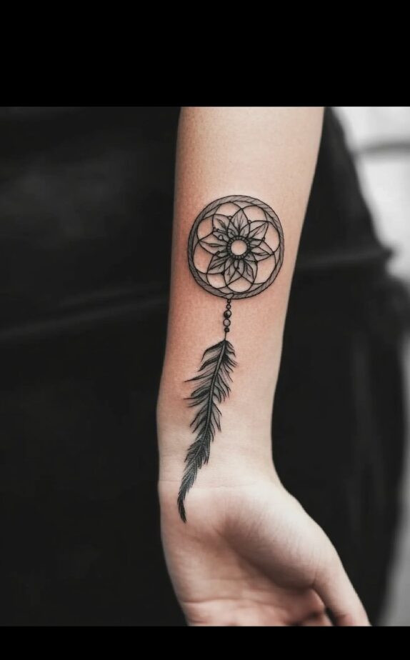 The dreamcatcher tattoo in the ninth image is a stunning representation of protection and good fortune. Dreamcatchers are traditionally believed to filter out negative energy, allowing only positive dreams and thoughts to remain. This is an ideal tattoo for anyone who values positivity, protection, and cultural symbolism.