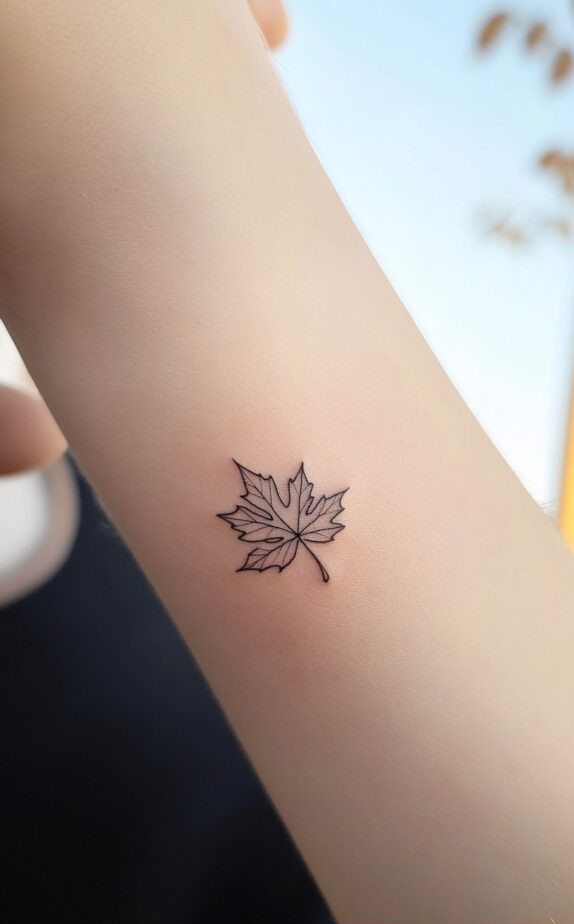 A small maple leaf tattoo, like the one shown in the seventh image, can have a variety of meanings, from a nod to Canadian heritage to celebrating the beauty of nature. Leaves often symbolize cycles, change, and the passage of time, making them a great choice for those who appreciate the subtle beauty of life s transitions.