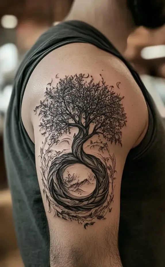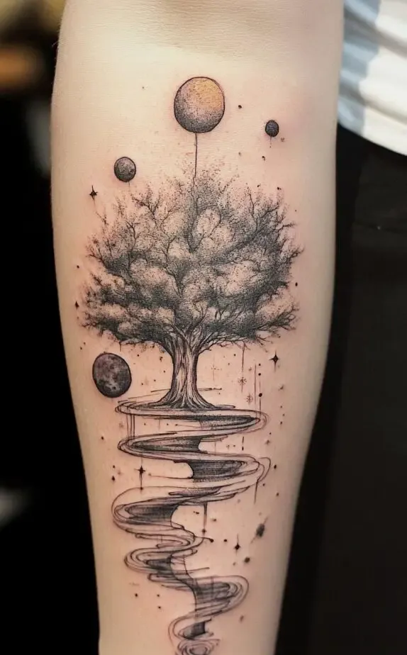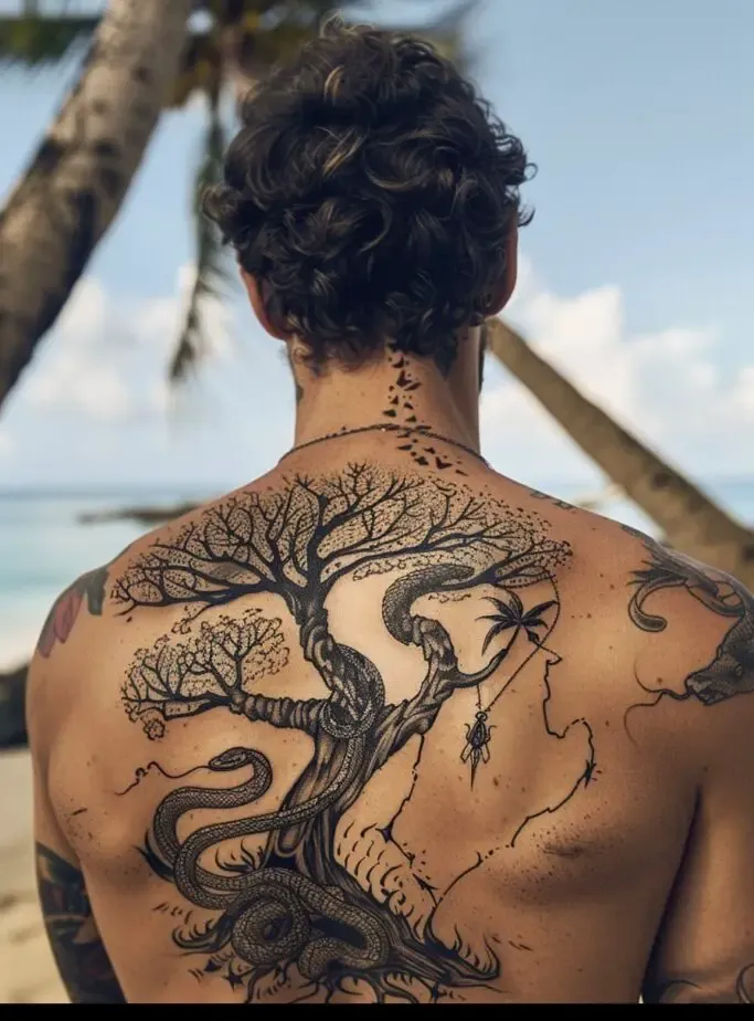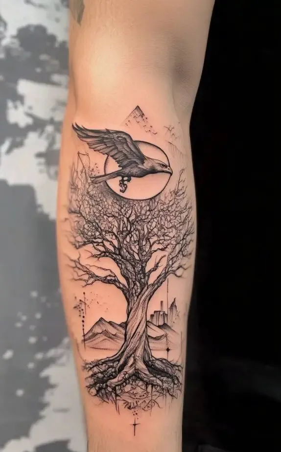 Across various cultures, this tattoo carries different meanings. In Celtic tradition, the Tree of Life symbolizes wisdom and longevity. The branches reaching up to the heavens signify aspiration, while the roots dug deep into the earth embody stability. Similarly, in many Indigenous cultures, the tree signifies harmony and balance within nature.