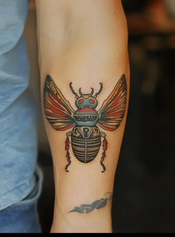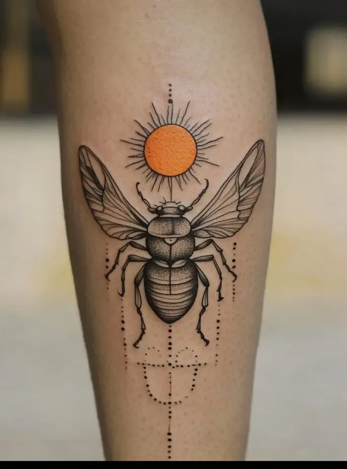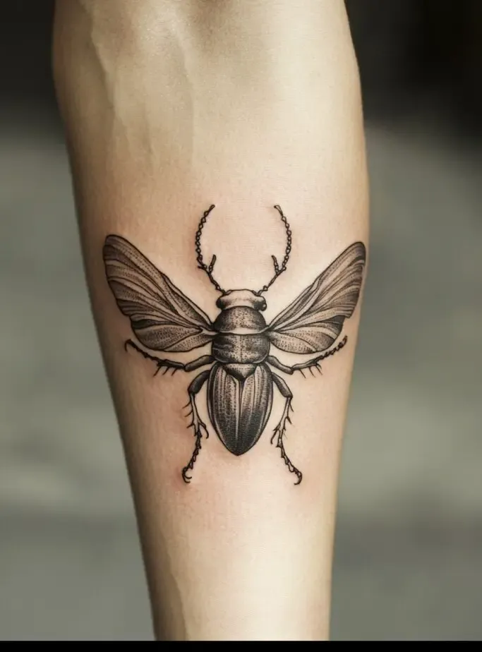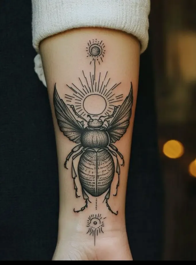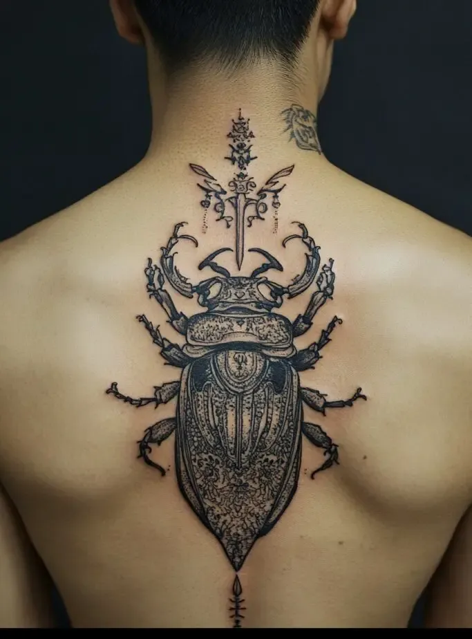 • Realistic Scarab: A detailed, realistic depiction of a scarab beetle, often placed on the back, shoulder, or chest.