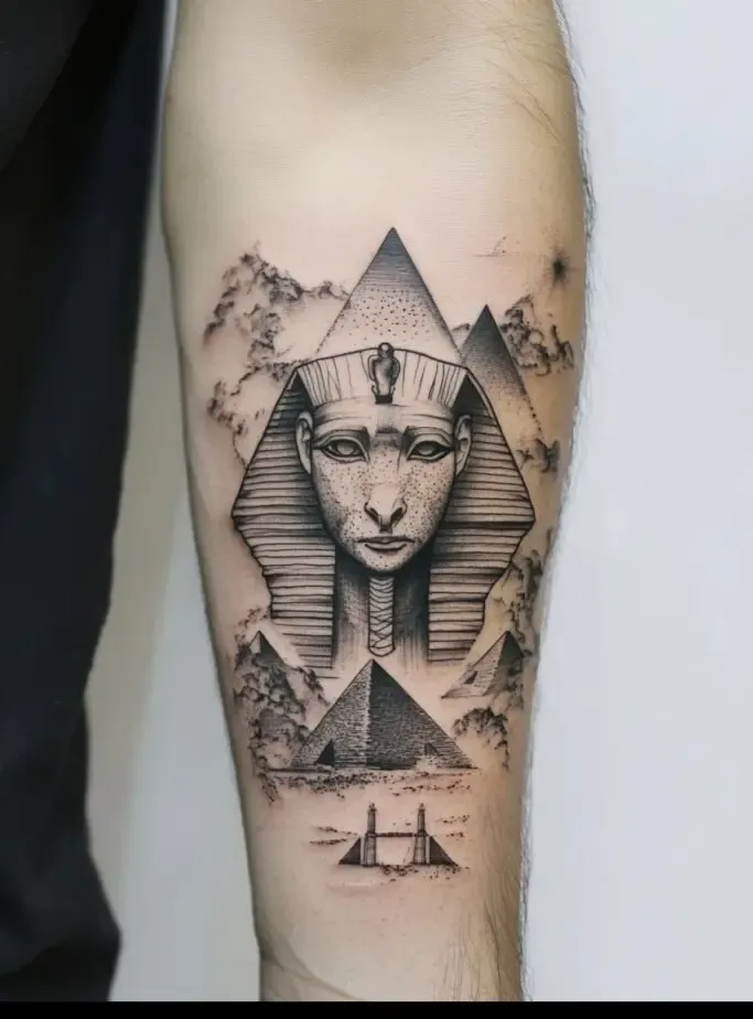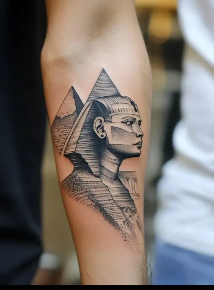 • Sphinx and Pyramids: Combine the Sphinx with the pyramids of Giza for a tattoo that symbolizes the ancient wonders of Egypt.