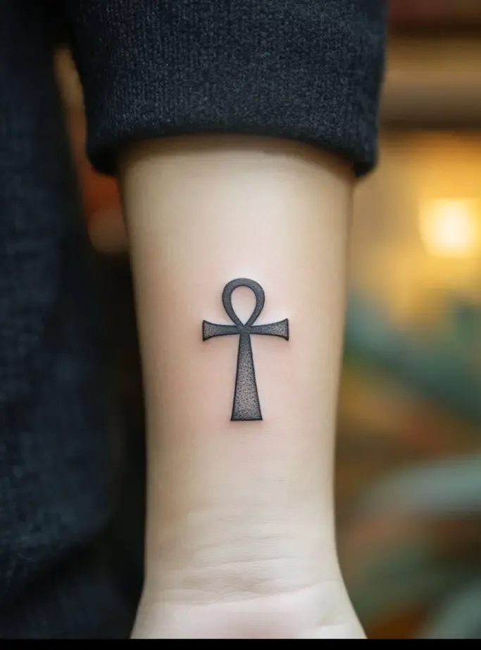 • Simple Ankh: A minimalist Ankh tattoo can be placed on the wrist, neck, or ankle for a subtle yet powerful design.