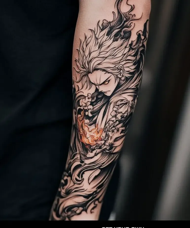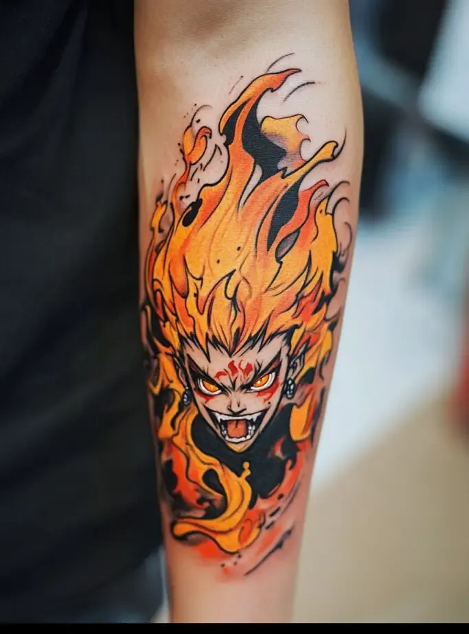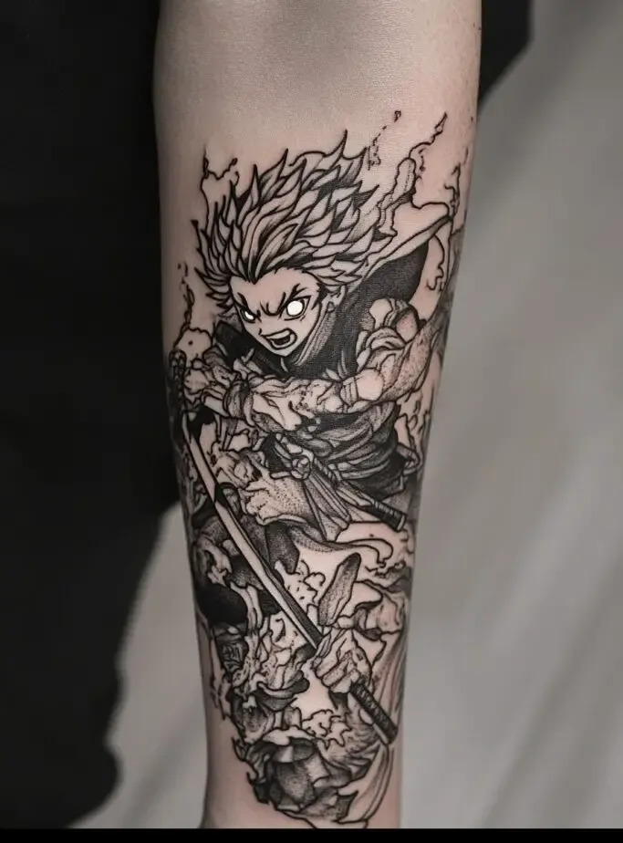 The artistry of Demon Slayer” is one of its most celebrated aspects, from the character designs to the animation style. A tattoo inspired by the series is a way to appreciate and showcase this artistry, turning your skin into a canvas that reflects the beauty of the anime.