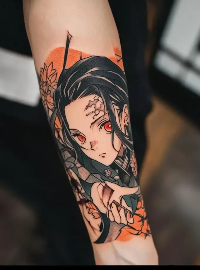 Nezuko Kamado, Tanjiro s sister, is another beloved character in the series. As a demon who retains her humanity, Nezuko symbolizes the struggle between light and darkness. Tattoos of Nezuko often depict her in her demon form, with her bamboo muzzle, pink eyes, and flowing hair. Fans may also choose to portray Nezuko s transformation or her fierce protective instincts, highlighting her duality as both a vulnerable girl and a powerful demon. Nezuko tattoos represent loyalty, inner strength, and the fight to maintain one s humanity.