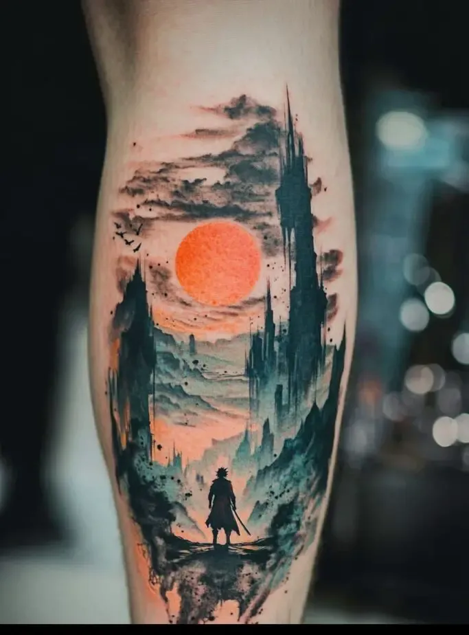 Beyond characters, Demon Slayer” is known for its stunning scenery and symbolic imagery. Fans may choose to get tattoos of iconic scenes, such as the breathtaking landscapes where battles take place or the hauntingly beautiful imagery associated with specific episodes. Symbolic elements like the wisteria flowers that protect humans from demons, or the sun, which is lethal to demons, also make for powerful tattoo designs. These tattoos encapsulate the essence of the series, representing the constant struggle between light and darkness, life and death.