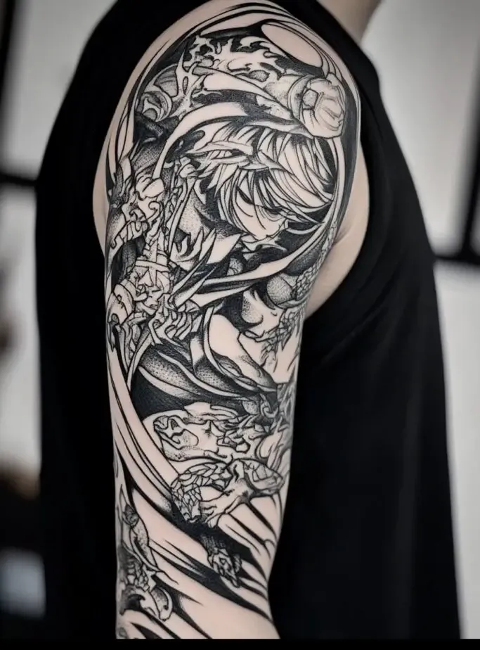 Anime tattoos are a bold way to express your love for a series, and Demon Slayer” is no exception. A tattoo can serve as a conversation starter, connecting you with other fans and allowing you to proudly display your fandom.