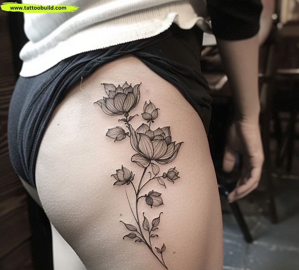 We delve into the enchanting realm of thigh tattoos for women, focusing on floral designs that capture the imagination and inspire creativity.