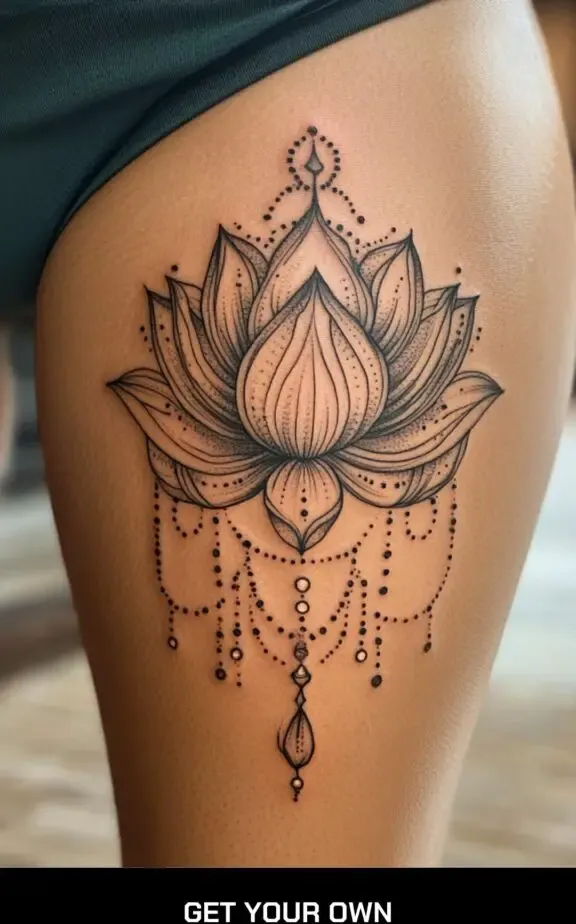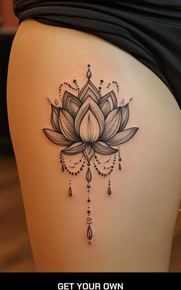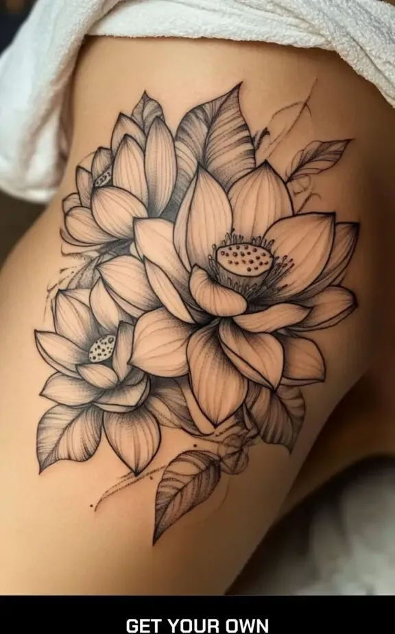 The lotus flower holds deep spiritual significance in many cultures, symbolizing purity, enlightenment, and rebirth. A lotus thigh tattoo can be designed with intricate details, showcasing the flower s layered petals and delicate lines. This tattoo is often done in black and gray for a classic look, but it can also be brought to life with soft pastel colors or even bold hues for a more modern interpretation. The lotus is an excellent choice for women who want a tattoo that reflects inner strength and serenity.