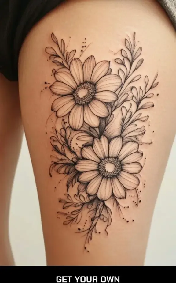 Daisies are symbols of innocence, purity, and new beginnings. A daisy thigh tattoo is often simple and understated, featuring one or more daisies in a minimalist style. These tattoos are usually done in white and yellow, but they can also be customized with other colors for a unique look. Daisies are a great choice for women who want a tattoo that is both sweet and meaningful.