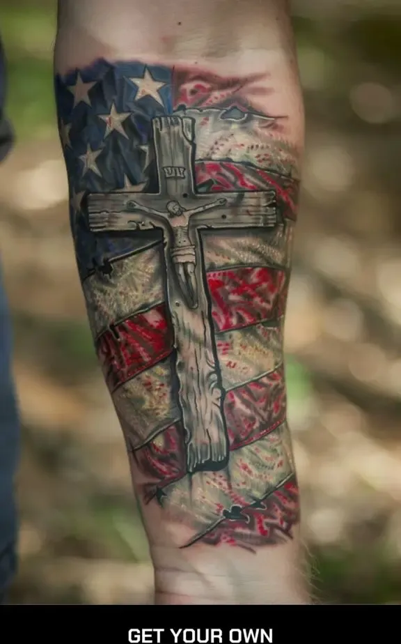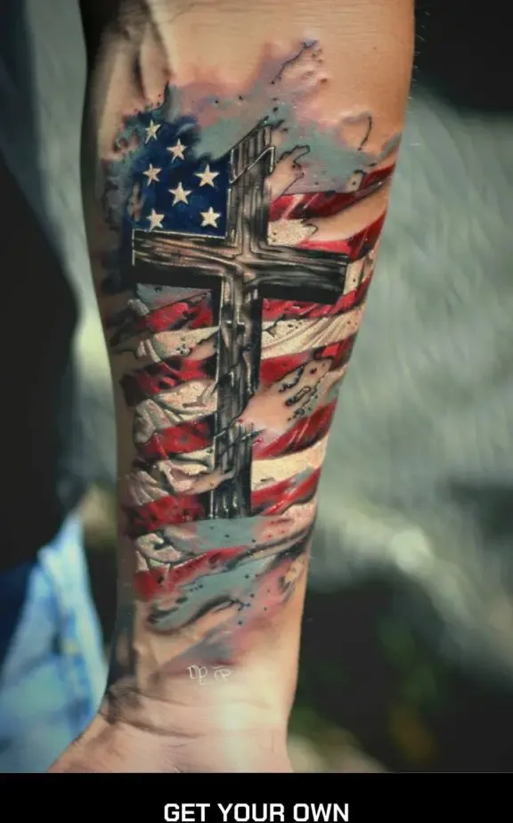 Combining the American flag with a cross can create a meaningful design for those who want to express both their patriotism and their faith. This tattoo can symbolize a deep connection to both country and religion.