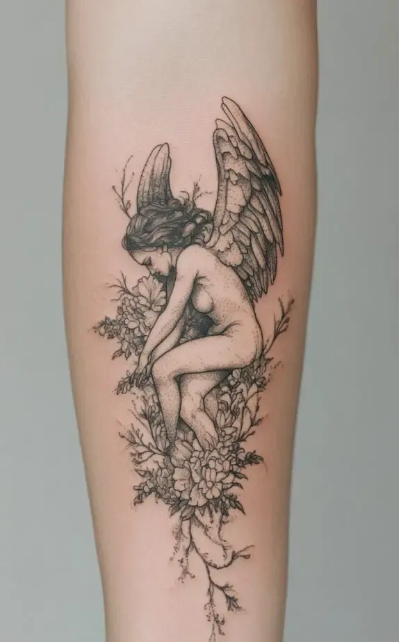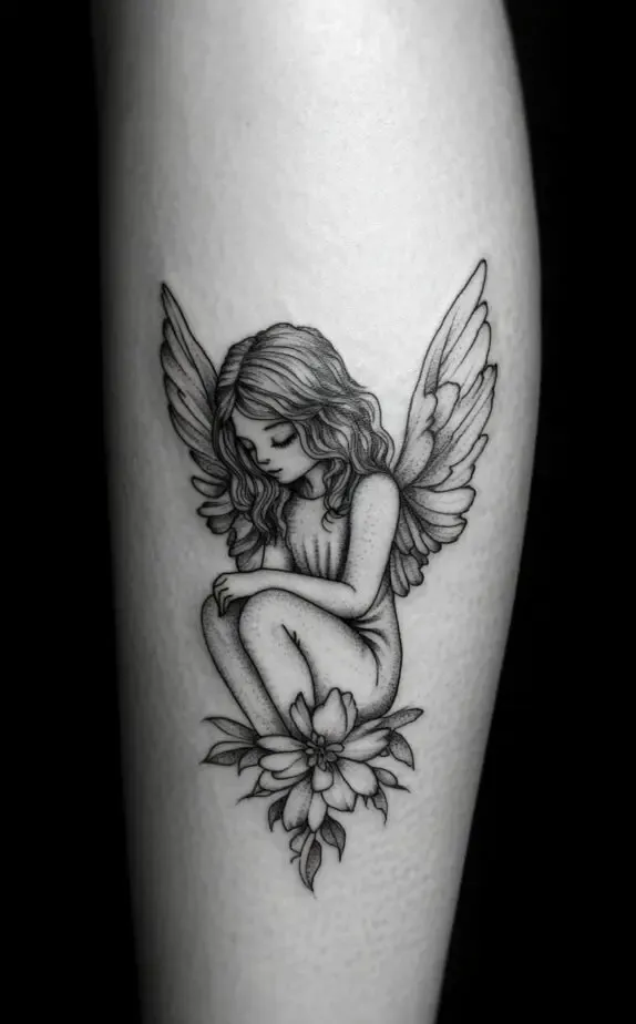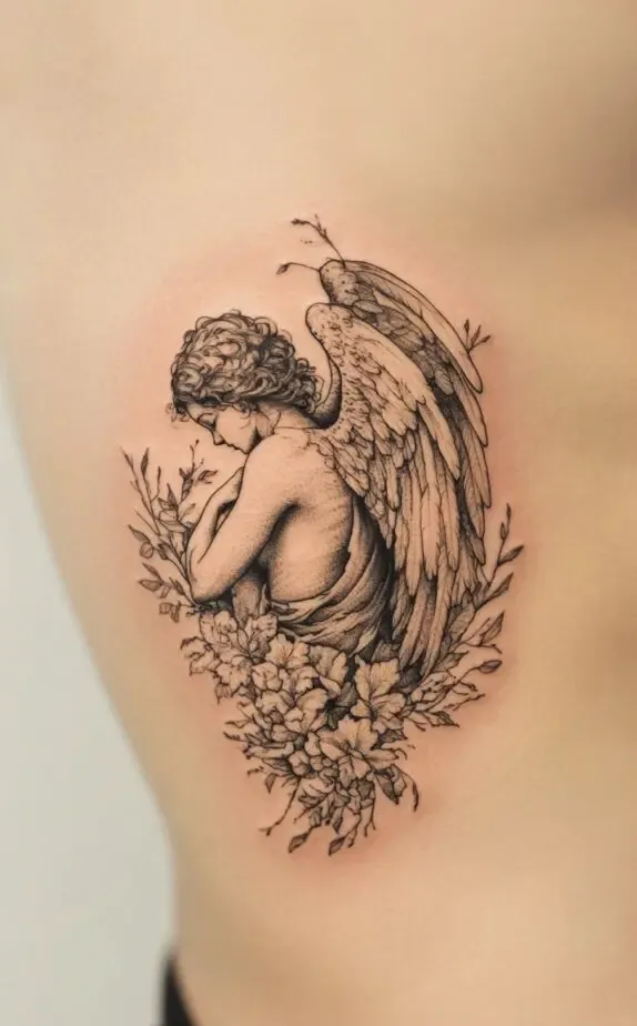Combining angel motifs with floral elements is a beautiful way to create a harmonious and symbolic tattoo. Flowers such as roses, lilies, or cherry blossoms can add color, texture, and additional meaning to the design. These combinations often represent love, purity, or renewal, complementing the spiritual essence of angels.