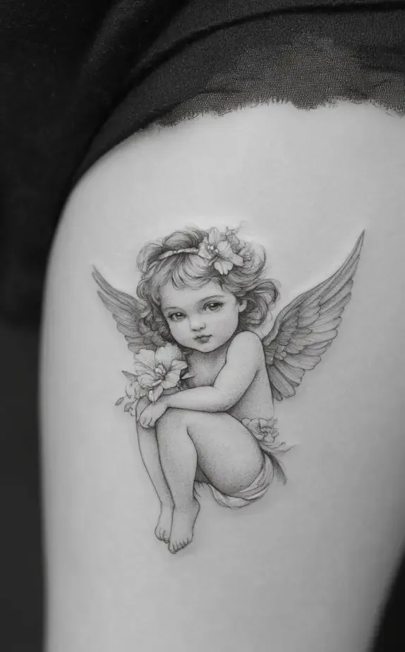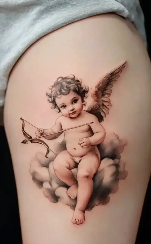 These tattoos are perfect for those seeking a connection to classical art or a romantic aesthetic. The soft lines and whimsical feel make cherubs a charming addition to any tattoo collection. They work well on areas like the shoulder, upper arm, or thigh, where the design can be appreciated in its entirety.