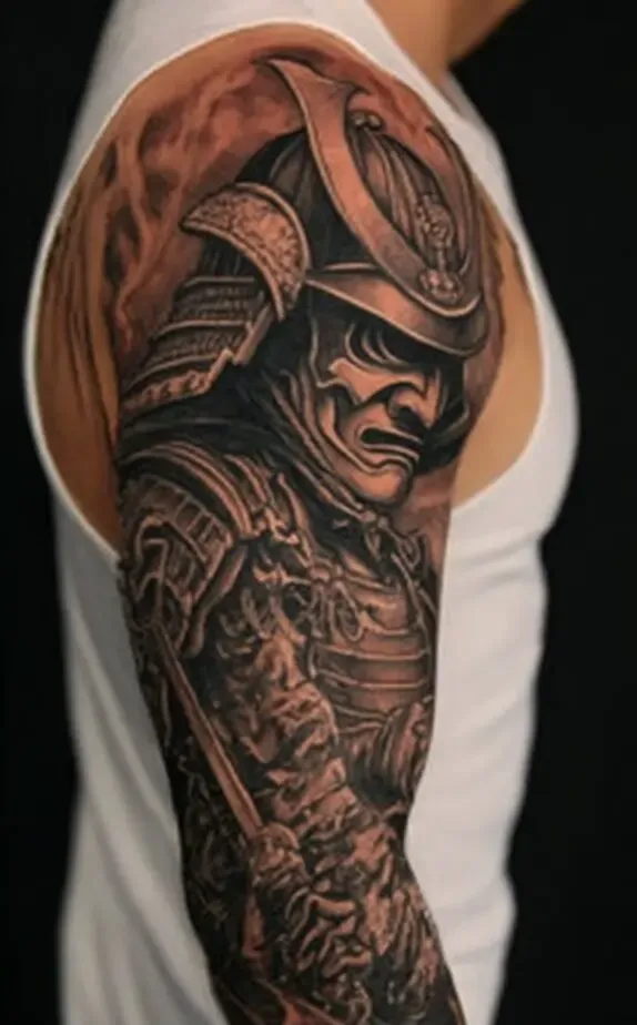 A samurai warrior tattoo embodies the revered virtues of the ancient Japanese warrior class, symbolizing honor, courage, and discipline.