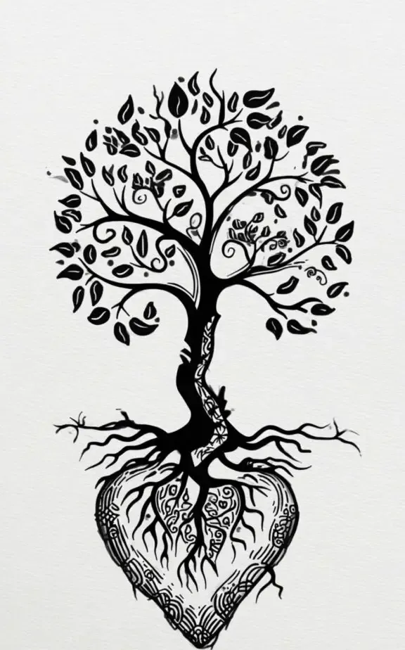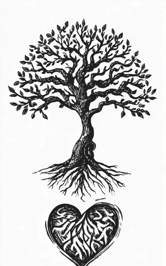 The roots can creatively morph into the shape of a heart below the surface, representing love, connection, and emotional grounding. This adds a deeply personal layer to the tattoo, signifying love as the sustaining force beneath life s growth.