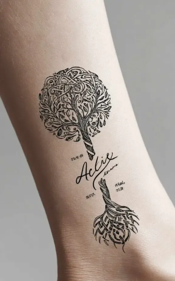 Roots are the foundation of the Tree of Life, symbolizing origin and connection. Many designs weave important names, dates, or empowering words into the intricate roots, turning the tattoo into a living tribute to family, ancestors, or cherished beliefs. This concept grounds the wearer in their personal history and creates a visually compelling, meaningful statement.