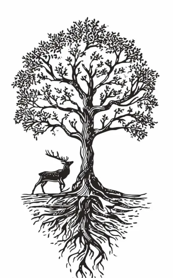 Incorporating animals like deer (grace, gentleness), owls (wisdom, mystery), or wolves (strength, loyalty) into the forest around the tree enriches the design with symbolic companions. It paints a portrait of wilderness, community, and various virtues, making the tattoo a dynamic ecosystem rather than just a single symbol.