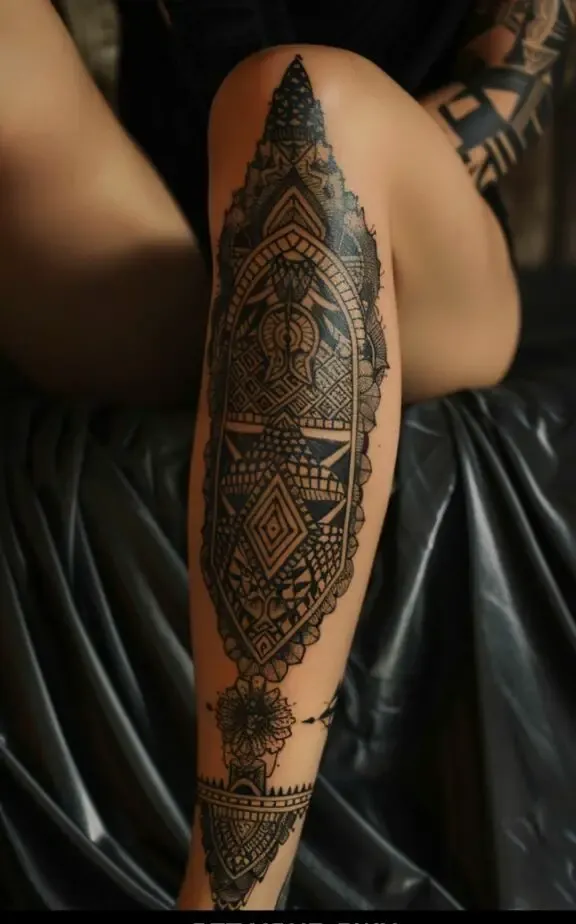 Leg tattoos offer a large and versatile canvas for Aztec designs. These tattoos can be detailed and elaborate, extending from the thigh to the ankle.