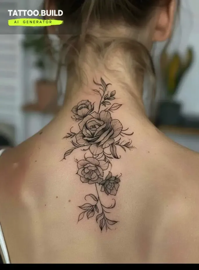 Rose Back Neck Tattoo