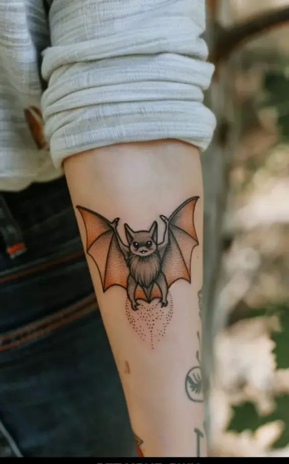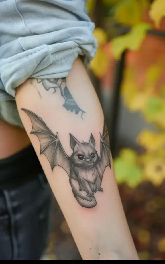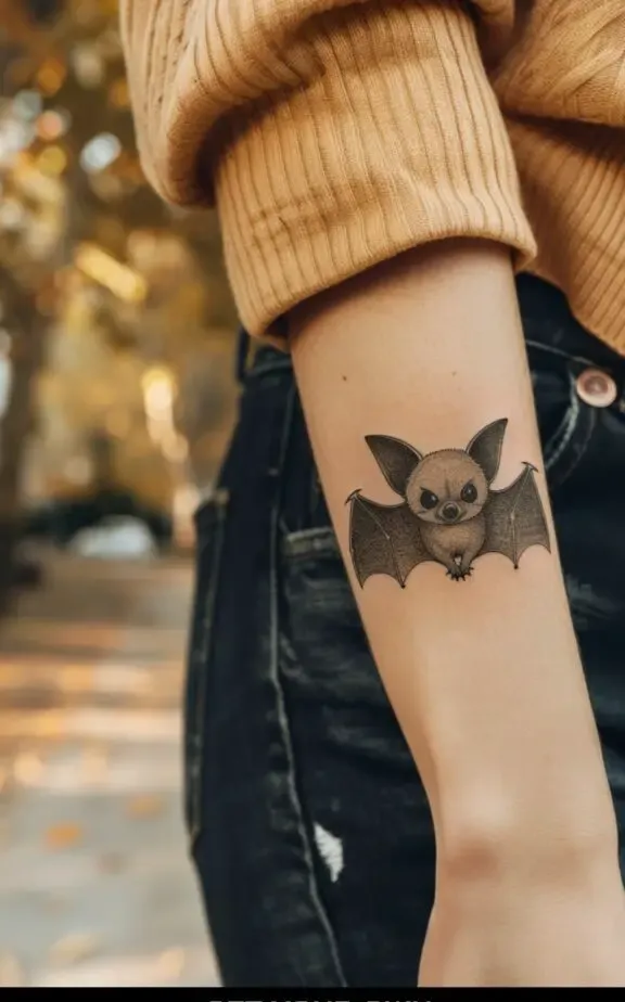 For a more whimsical and playful design, a cute bat tattoo can be an adorable and charming option. This style often features cartoon-like bats with big eyes and sweet expressions, perfect for those who want a fun and lighthearted tattoo.