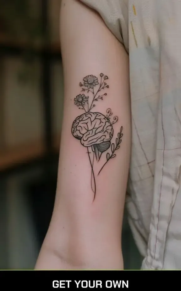 2. Brain and Flowers Tattoo