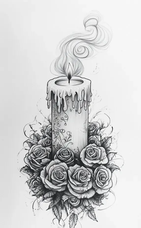 The candle and roses design in Chicano tattoo art symbolizes remembrance, spirituality, and the passage of time. The candle s melting wax, delicately rendered, represents the fleeting nature of life, while the surrounding roses add a romantic, gothic touch, expressing love and remembrance for loved ones. The soft, smoky wisps rising from the flame add an ethereal quality, infusing the design with a somber beauty. This tattoo serves as a tribute, often honoring family members or lost loved ones, embodying the deep connection between life, death, and the eternal nature of memories in Chicano culture.