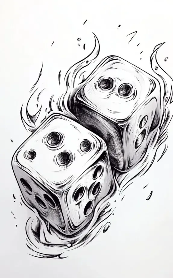This tattoo depicts two dice engulfed in flames, symbolizing risk, luck, and the thrill of chance. The fiery elements and heavy shading add a dynamic effect, making the dice appear as if they are rolling with intense energy. Dice are commonly used in tattoo art to represent fate and destiny, especially within Chicano culture, where they symbolize taking risks in life. The linework in this design accentuates each detail, from the texture on the dice to the smooth curves of the flames, making it a striking piece for anyone who resonates with themes of luck and boldness.