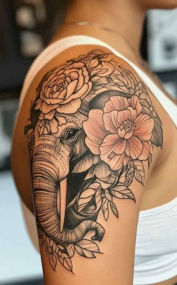 Floral tattoos are timeless and elegant, making them one of the most popular choices for shoulder tattoos. Flowers symbolize beauty, growth, and nature, and each type of flower has its unique meaning.