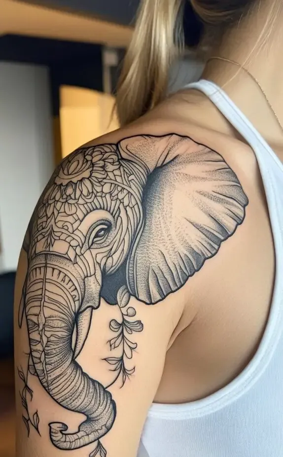 Geometric patterns can range from simple shapes to more complex, intricate designs that cover the shoulder in mesmerizing symmetry. Mandalas and geometric shapes fit perfectly on the shoulder, as they can be centered and evenly balanced, creating a harmonious and pleasing look. Whether done in bold black ink or soft grayscale shading, these designs offer an elegant and classy option that appeals to those who appreciate detail and structure in their tattoos.