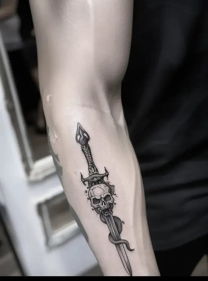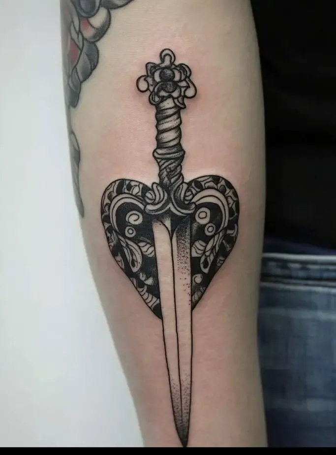 Daggers can be incorporated into a wide range of tattoo styles, from traditional and neo-traditional to realistic and abstract. Whether you prefer bold, graphic lines or intricate, detailed artwork, a dagger can be adapted to fit your personal style. It can stand alone as a simple, elegant design or be combined with other elements such as roses, skulls, snakes, or hearts to create a more complex and personalized piece.