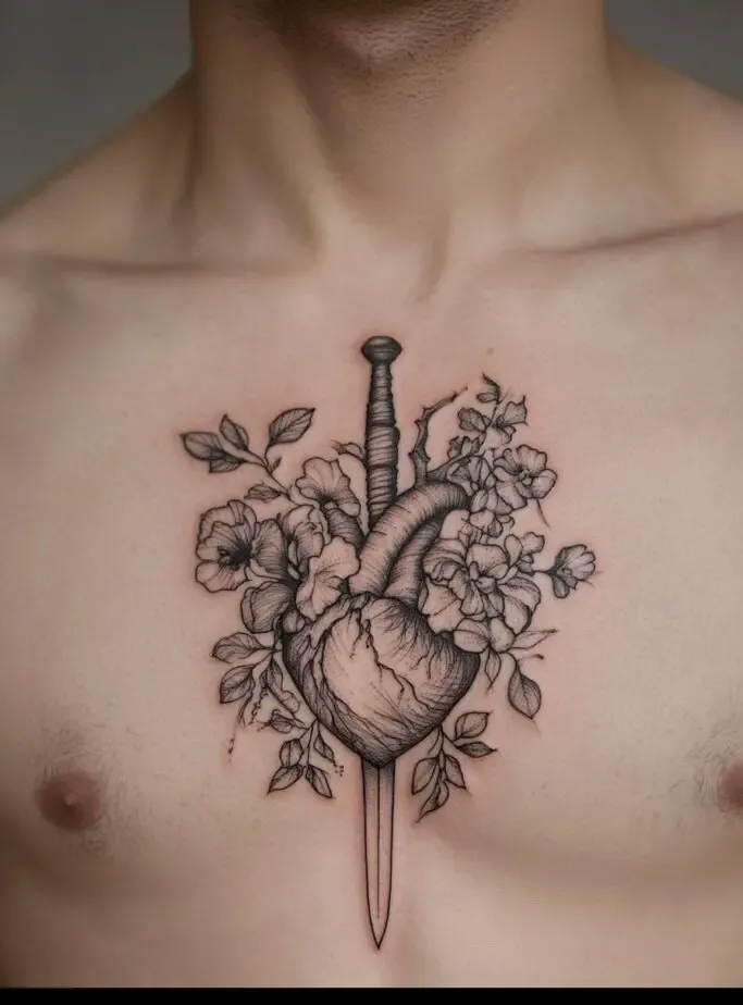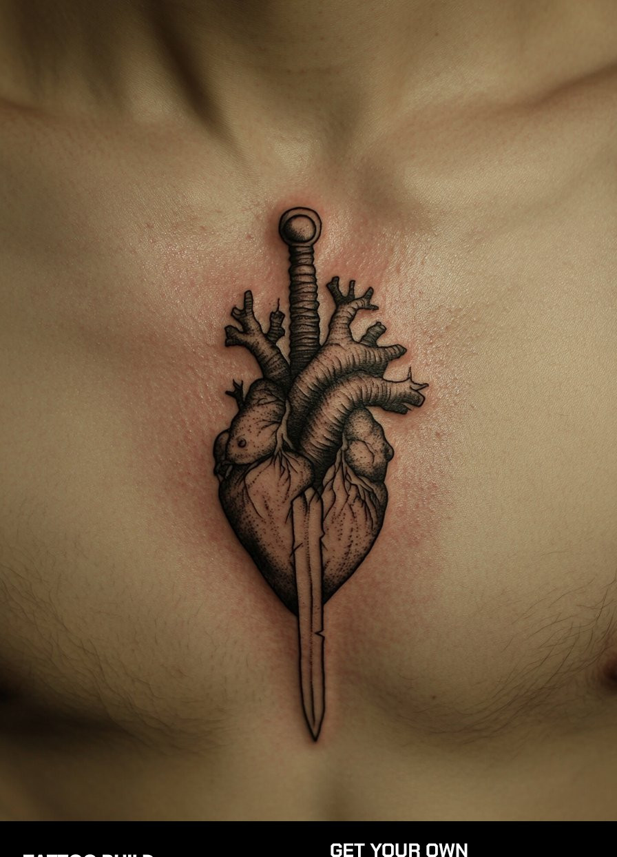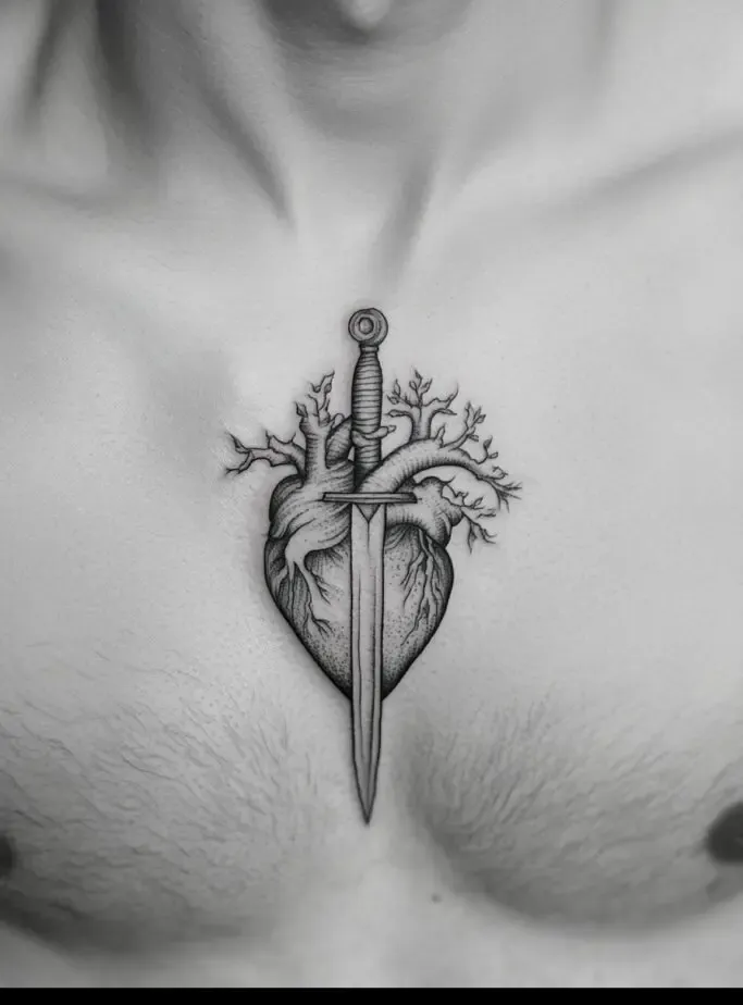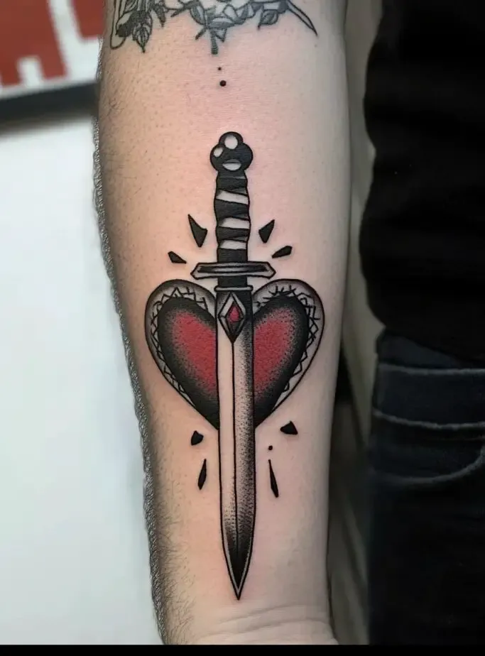 This classic tattoo design represents betrayal, heartbreak, and the pain of lost love. The imagery of a dagger piercing a heart is a powerful symbol of emotional pain and can be a way for the wearer to express feelings of sadness, betrayal, or a difficult breakup. However, it can also symbolize the idea of overcoming heartbreak and moving forward with strength and resilience.