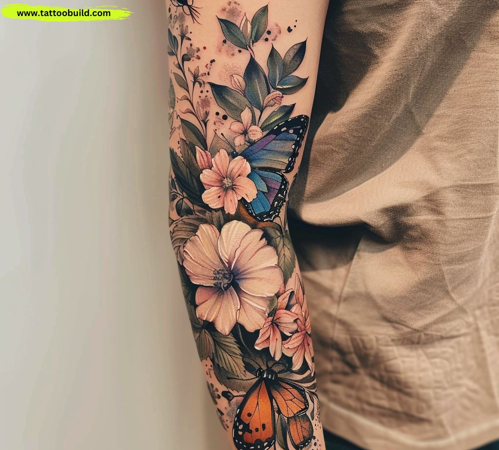 Watercolor tattoos mimic the look of watercolor paintings, with vibrant splashes of color and fluid, flowing designs. This style is perfect for those who want a unique and artistic sleeve that stands out.