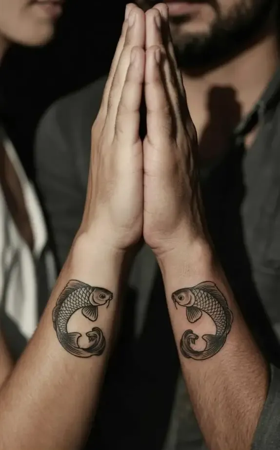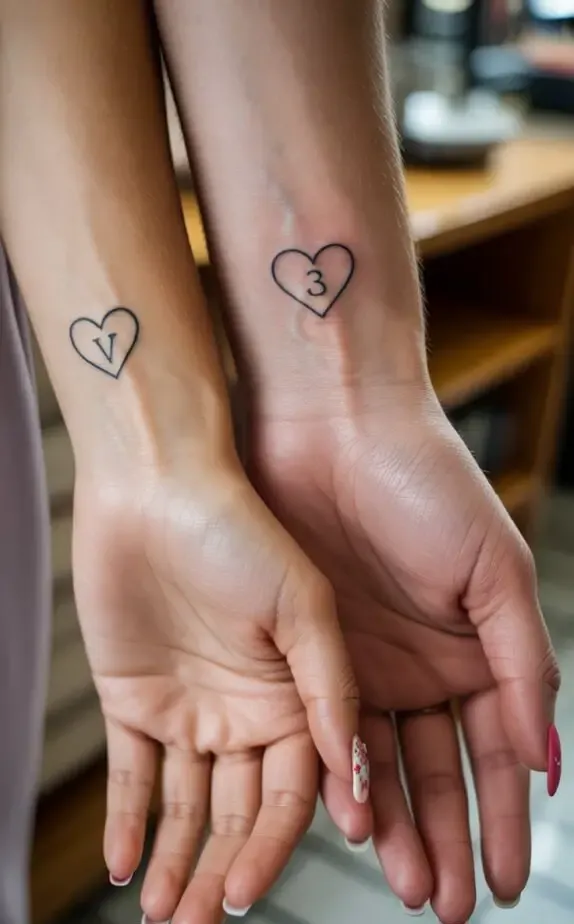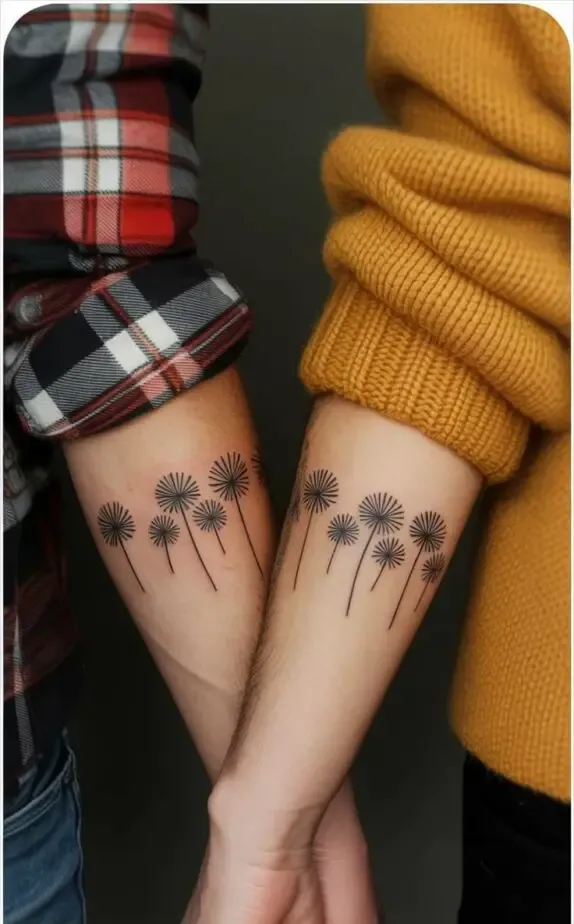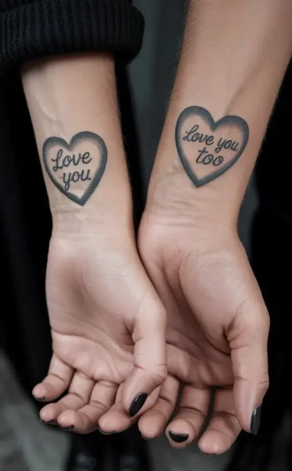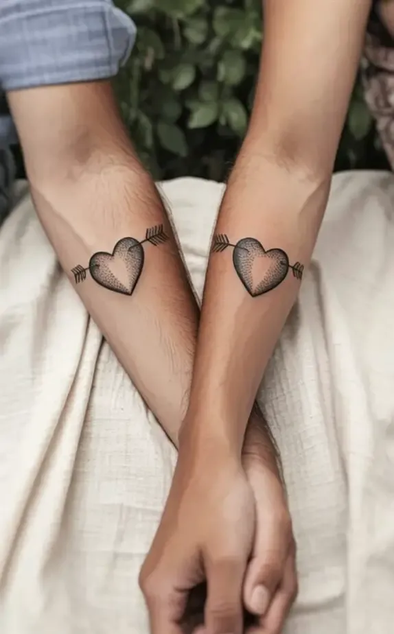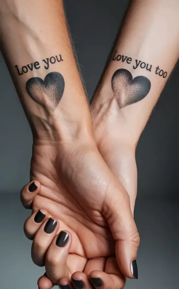 Not every couple wants a bold, visible tattoo. Some prefer something discreet tiny tattoos tucked behind the ear, on the ankle, or hidden in the crook of an elbow. These small designs can be just as meaningful as larger ones, and their subtlety adds to their charm.