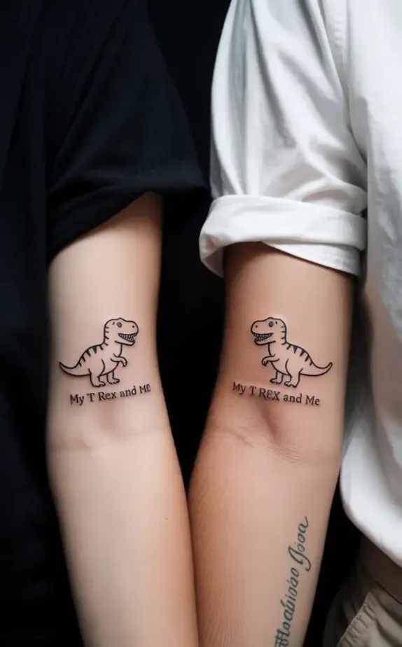 These tattoos are often the ones that make people smile. They show that you re not afraid to be playful and authentic in your relationship. Whether it s a slice of pizza and a soda can, or matching dinosaurs wearing sunglasses, funny tattoos capture the unique tone of your partnership.
