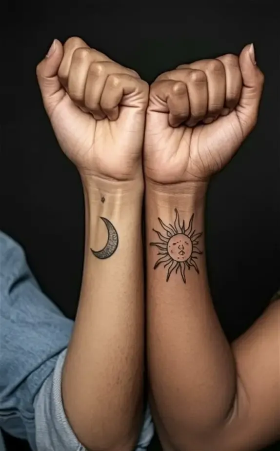 Not all couples want identical tattoos, and that s where complementary tattoos shine. These designs are individually distinct but only feel complete when seen together. Think puzzle pieces, yin and yang, lock and key, sun and moon. On their own, each tattoo tells a story but side by side, the full picture emerges.