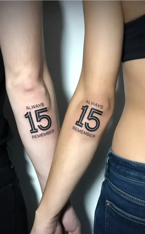 Quotes from books, movies, or songs that have played a key role in the relationship also make for great script tattoos. The words become a shared mantra, something to return to during the ups and downs of life.
